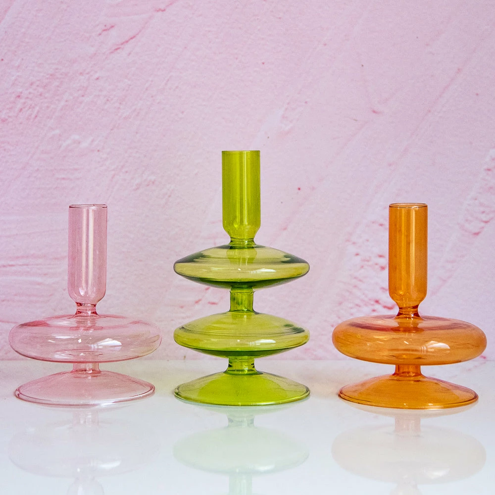 *These are handmade Borosilicate Glass candle holders, please allow for some variations. We recommend shaving/trimming your candle if it doesn’t fit the holder. Do not press the candle too hard to make it fit, as it can break the holder.