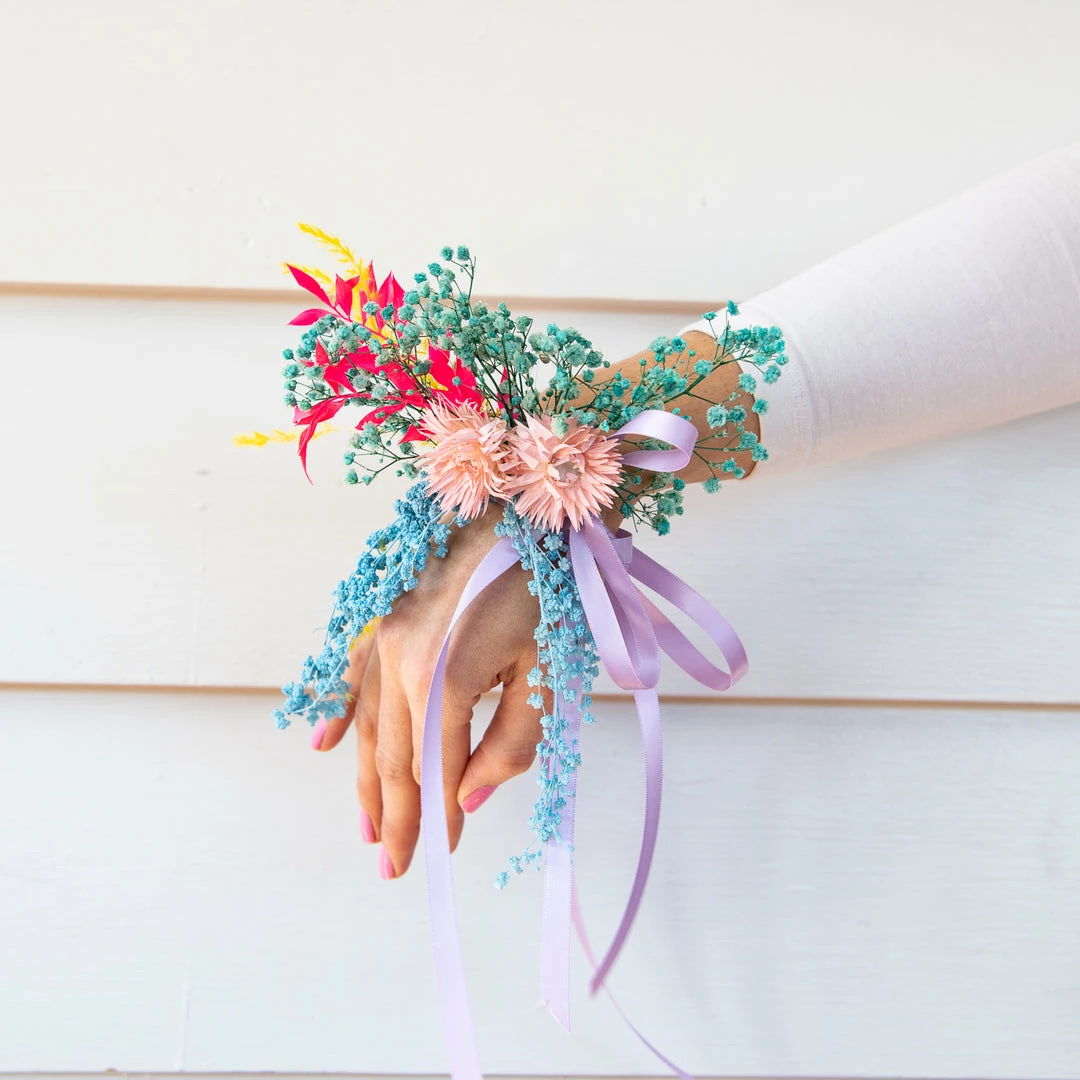 Our beautiful corsage is handmade with love in Melbourne. The flowers are attached to wire, making it adjustable to all sizes. Perfect for both children and adults.Â