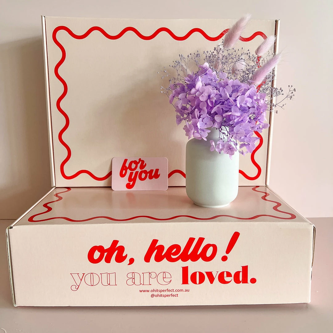 Your vase arrangement is delivered beautifully wrapped and carefully boxed up in our “You Are Loved” Gift Box. We can handwrite your gift message in the complimentary linen gift tag!Â
