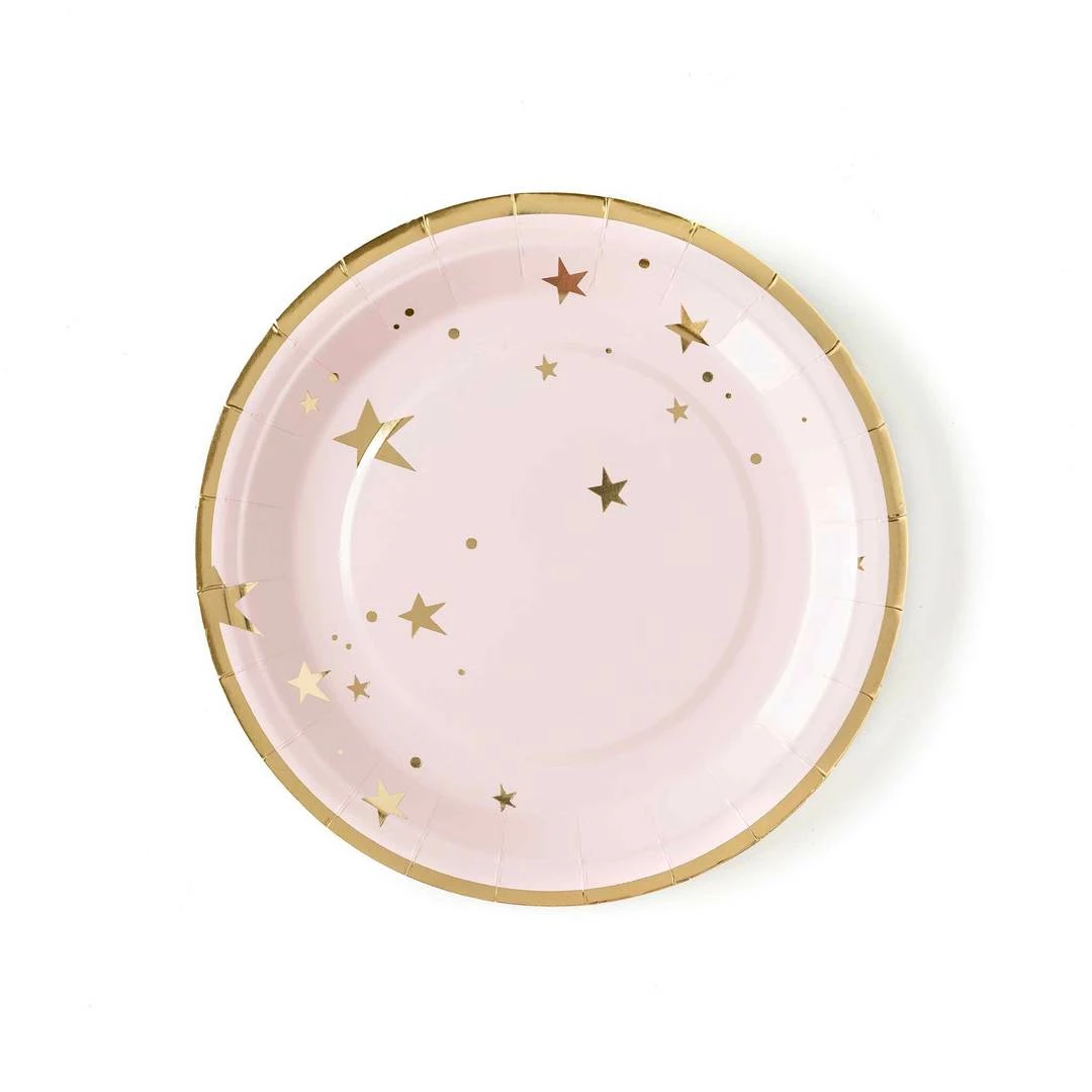 Simple, sweet and stylish are the perfect way to describe these 7″ party plates. With a timeless gold foil star pattern these paper plates will set the perfect table for your next girly celebration.Â