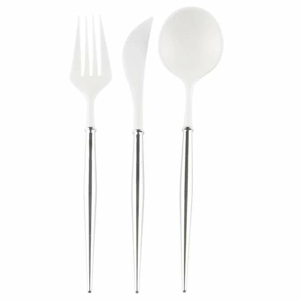 - Colour:Ā White Tops & Metallic Silver HandlesĀ