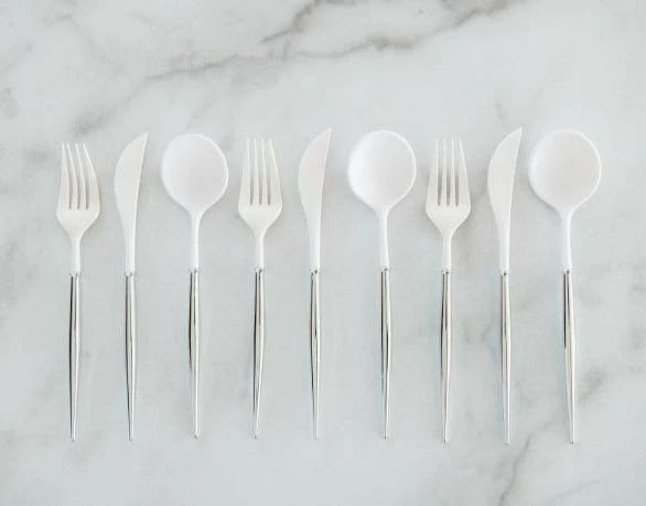 The Bella line of disposable plastic cutlery is a gorgeous and sleek modern design that elevates any table, place setting, or event. Perfect for Birthday Parties, Date Night, Family Gatherings, Holidays, Baby Shower, Bridal Shower, Outdoor Entertaining, Kids Parties, and more.Ā