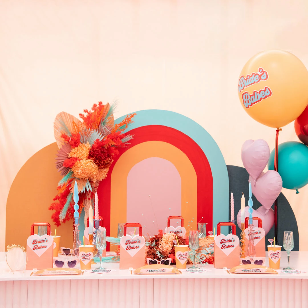 Attention all Bride’s to Be and Bridesmaids! Get the gang together and start planning an epic bachelorette party with the help of our new retro themed Bride’s Babes party ware. This range has been pumped full of Bachy fun with sweet love hearts and sparkling details!
