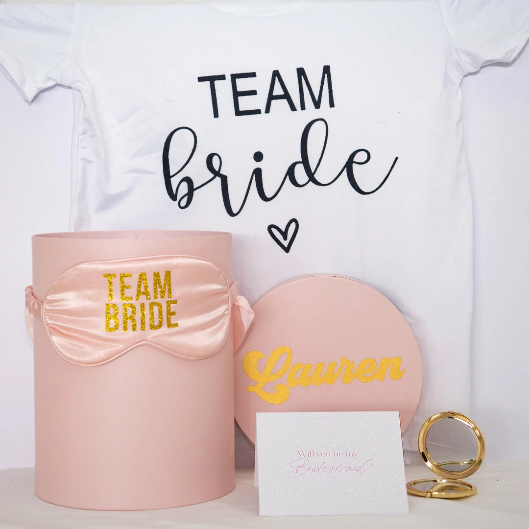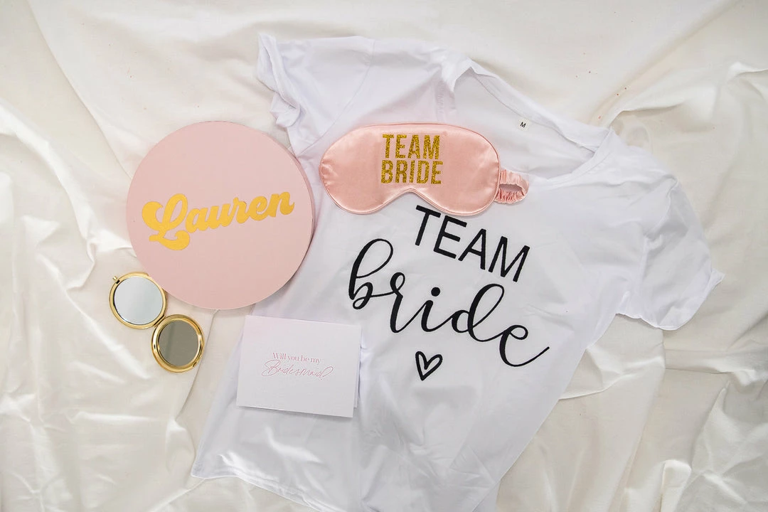- 1 Team Bride T-shirt (please specify your size needed size S,M, or L in the notes section)