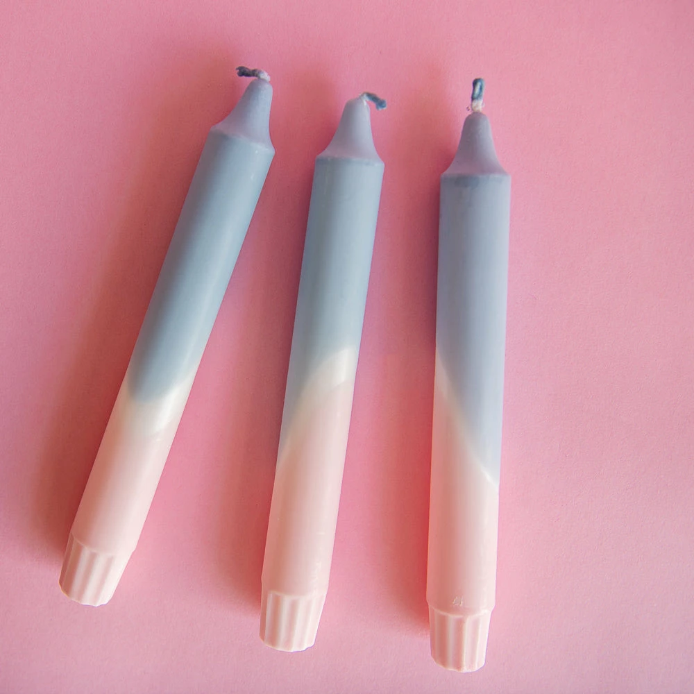 Our pink and blue dip dyed candle comes in beautiful shades of pink and blue. Each candle is handmade and unique. Add a bit of fun and colour to your home decor or soiree with these cute candles.