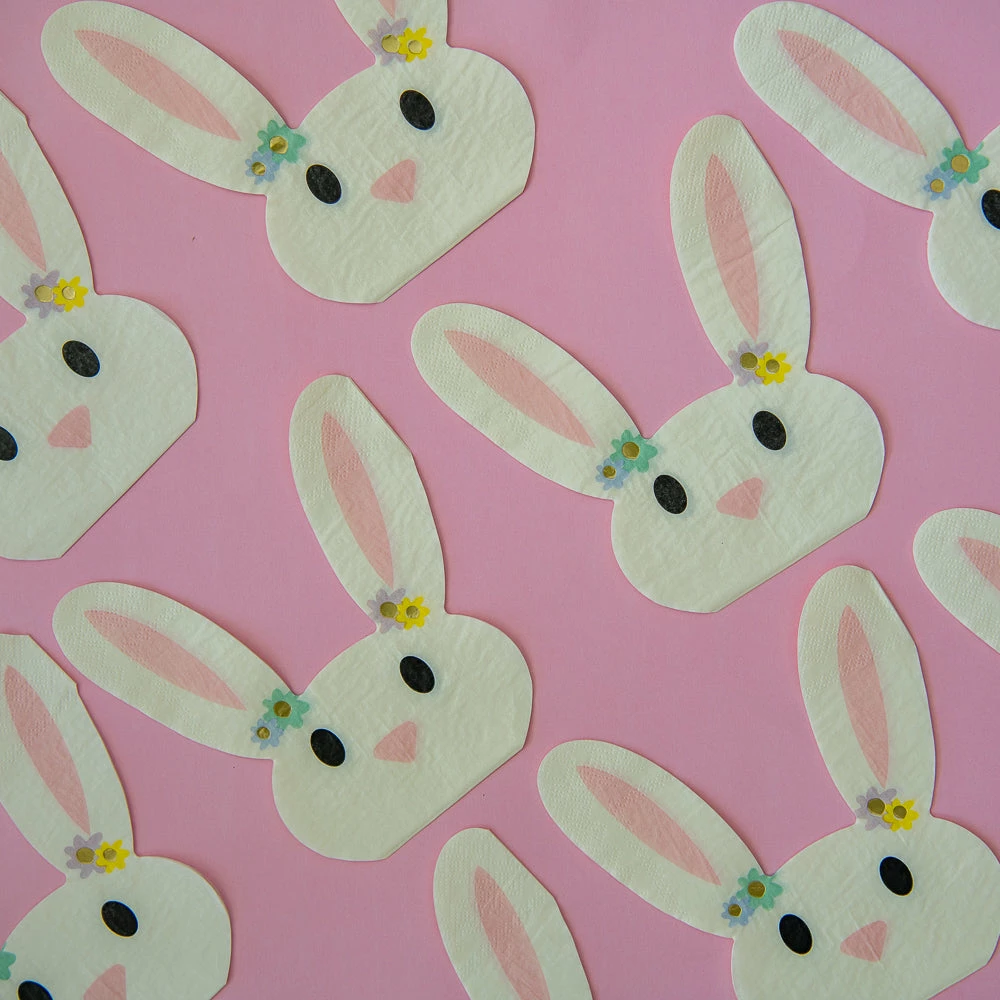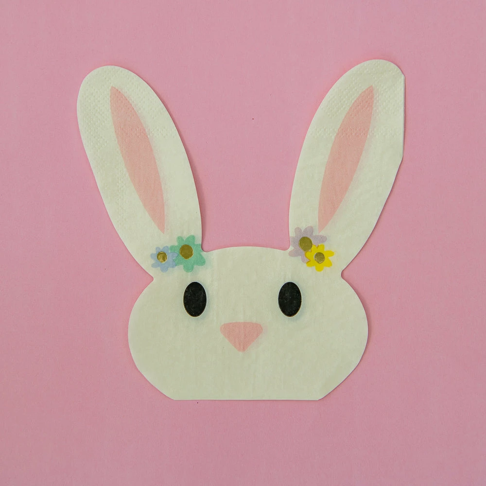 - The front/back of the napkin features a cute bunny face with flower detailing