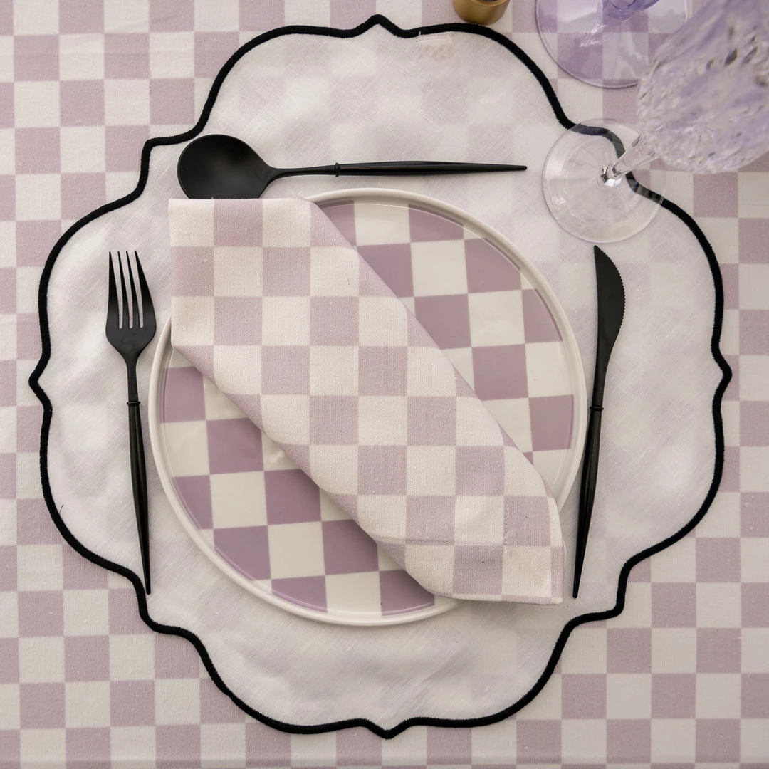 A stunning statement piece from our Checkmate collection. Our lilac checkered napkin set, made of 100% organic cotton can be paired with the matching Checkered Tablecloth or style them with a solid coloured tablecloth.