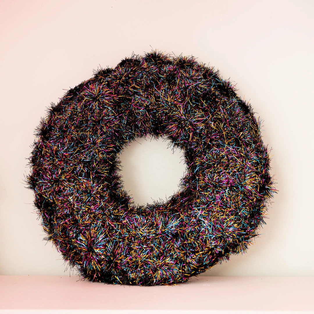Ohitsperfect Christmas Holographic Black Tinsel Pom Pom Wreath