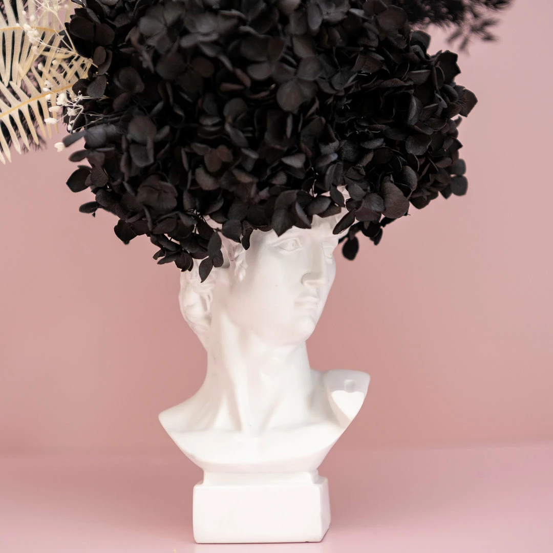 Our David Head vase arrangements are inspired by the Michelangelo’s David statue in Florence. Re-imagine the classic form of the original “David” sculpture into an everlasting statement piece for your home or event.