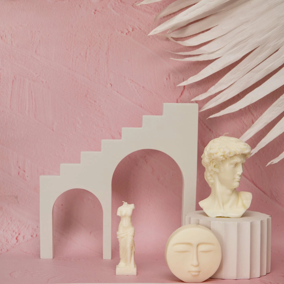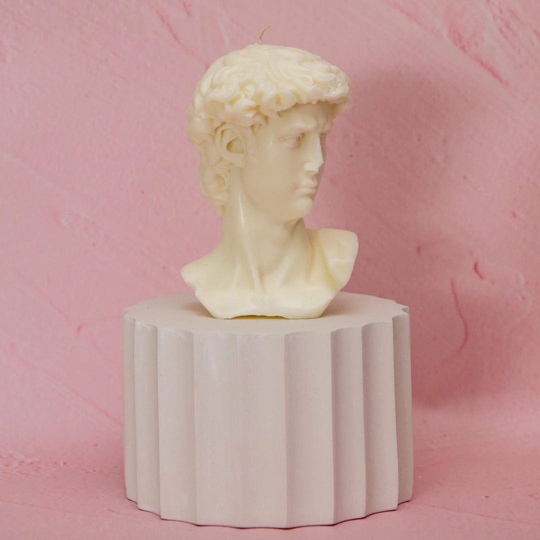 Hand poured with soy wax, our David Head candle stands 14.5cm tall.