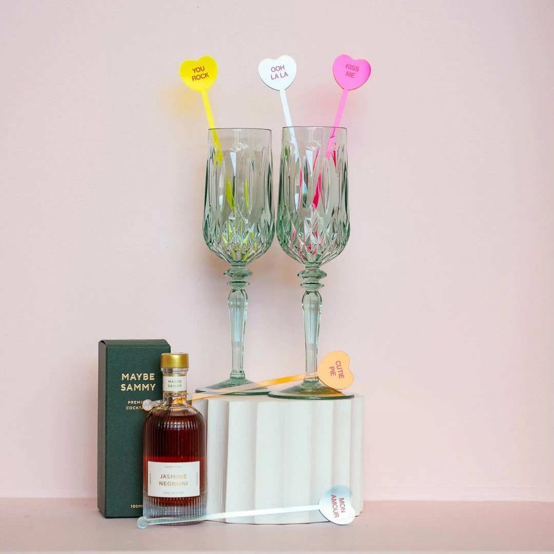 - 1 x Conversation Acrylic Heart Drink Stirrers Set 5pk