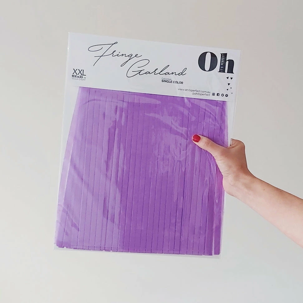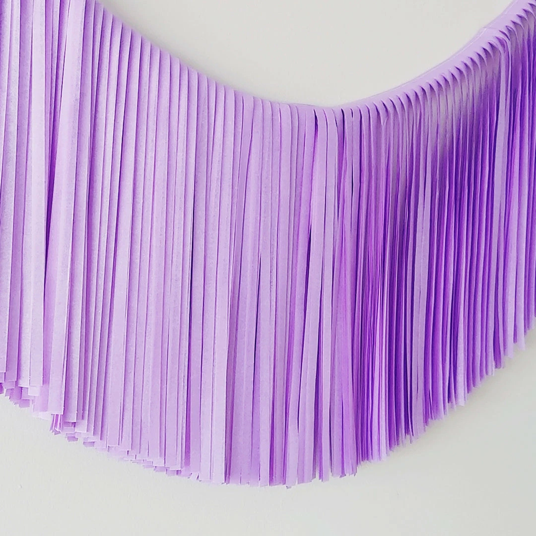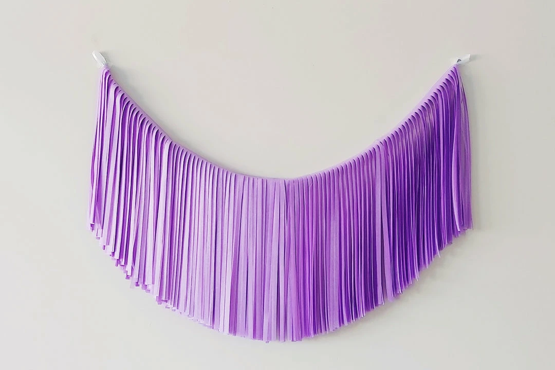 Hand made paper fringe garland. All you have to do is remove the packaging, shake and you’re ready to decorate!  You can layer with several colours and combine them in different heights, to create a ceiling or backdrop that will wow your party guests!