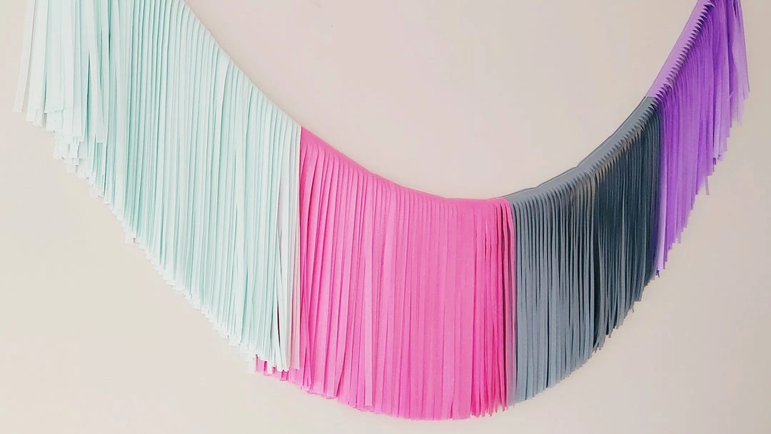 Hand made paper fringe garland.Ā All you have to doĀ is remove the packaging, shake and you’re ready to decorate!Ā Ā You can layer with several colours and combine them in different heights, to create a ceiling or backdrop that will wow your party guests!
