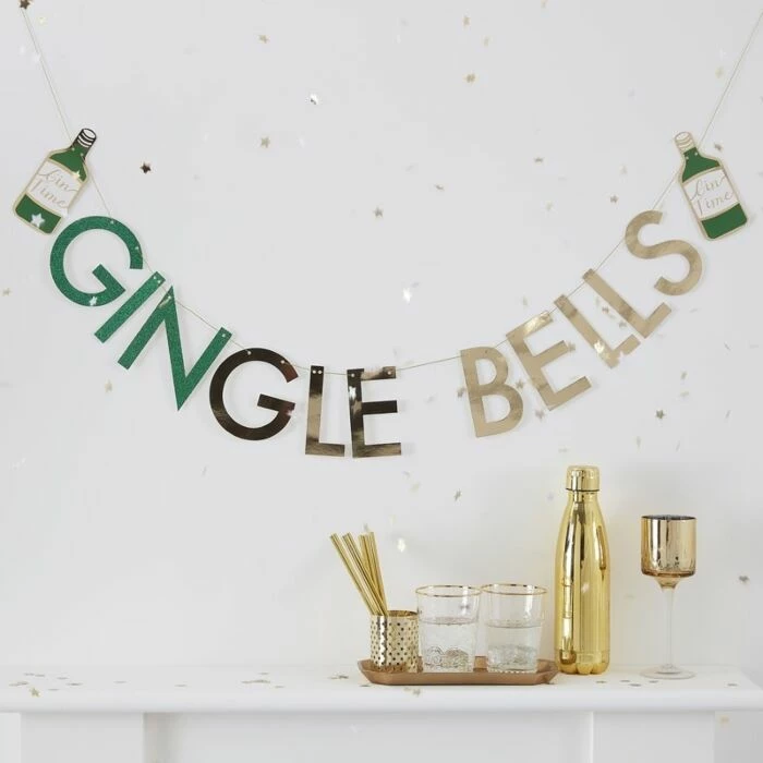 This eye catching Gingle Bells bunting is perfect for parties and any special celebrations. The stunning gold and green glitter will be shimmering as you party the night away.