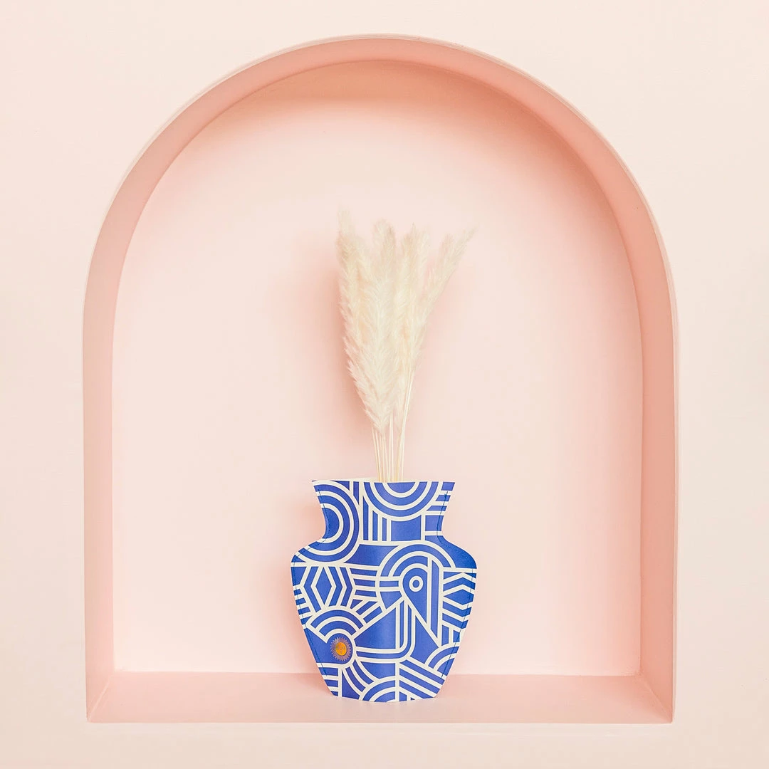 The Greco handcrafted flower vase is taking you on a voyage around the Mediterranean. Made of special waterproof paper, it’s a tribute to the ancient and sophisticated art of ceramics. We have paired this vase with a bunch of stunning preserved fluffy white reeds.