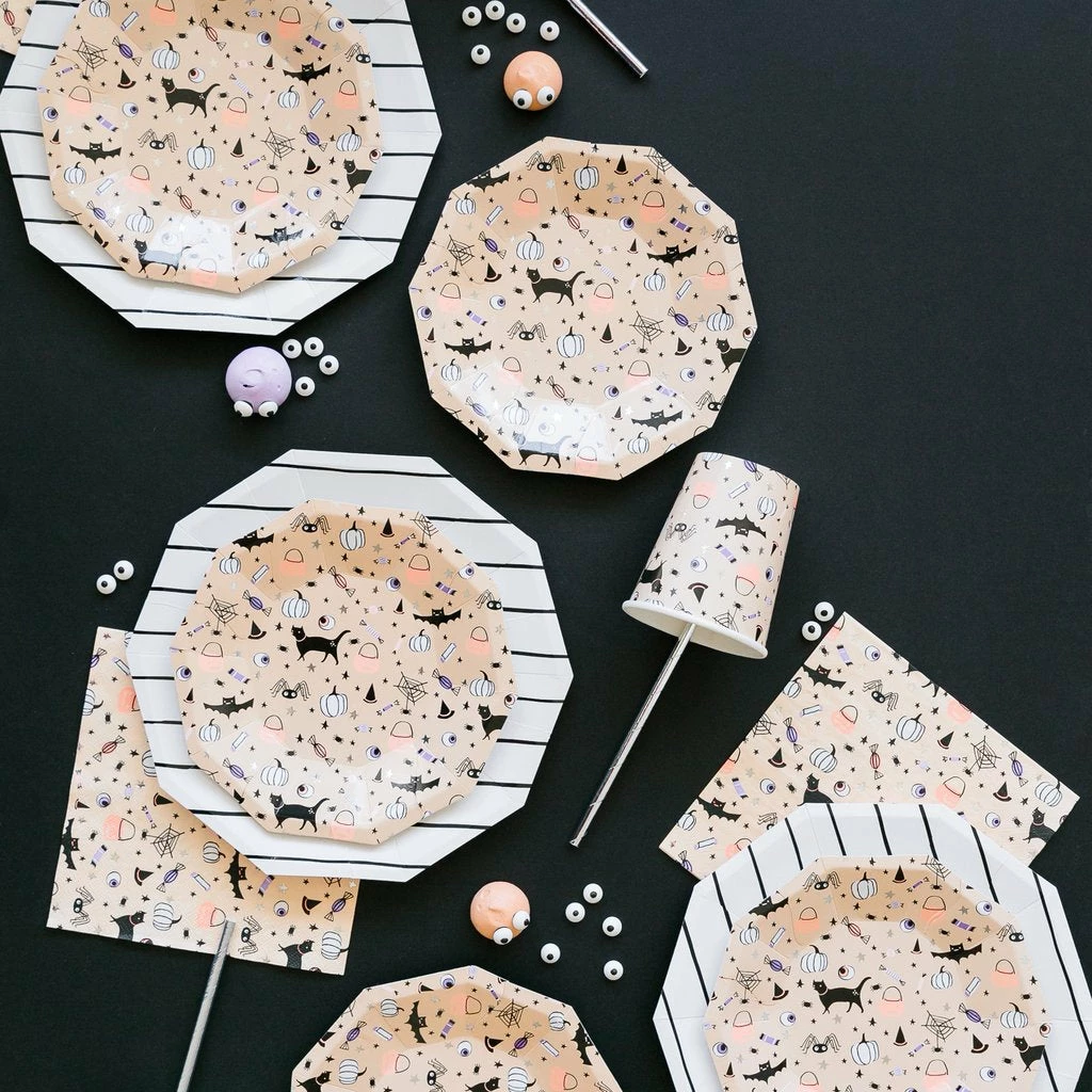 All the tricks and treats! featuring silver foil elements, these halloween napkins have put a spell on us!