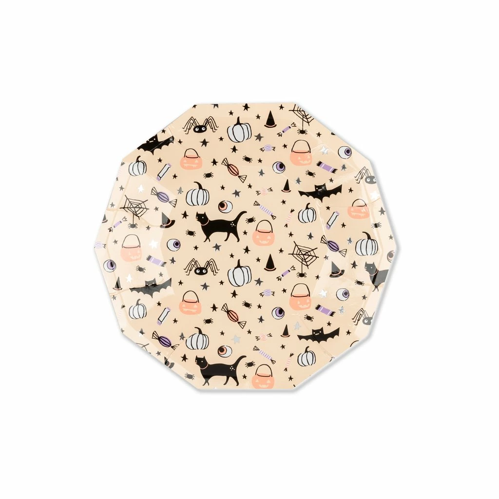 all the tricks and treats! featuring silver foil elements, these halloween plates have put a spell on us!