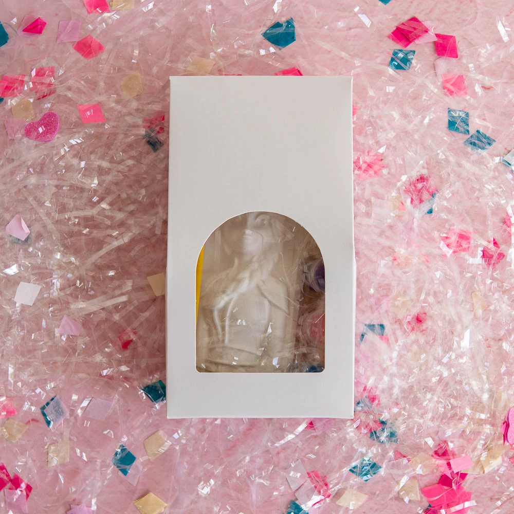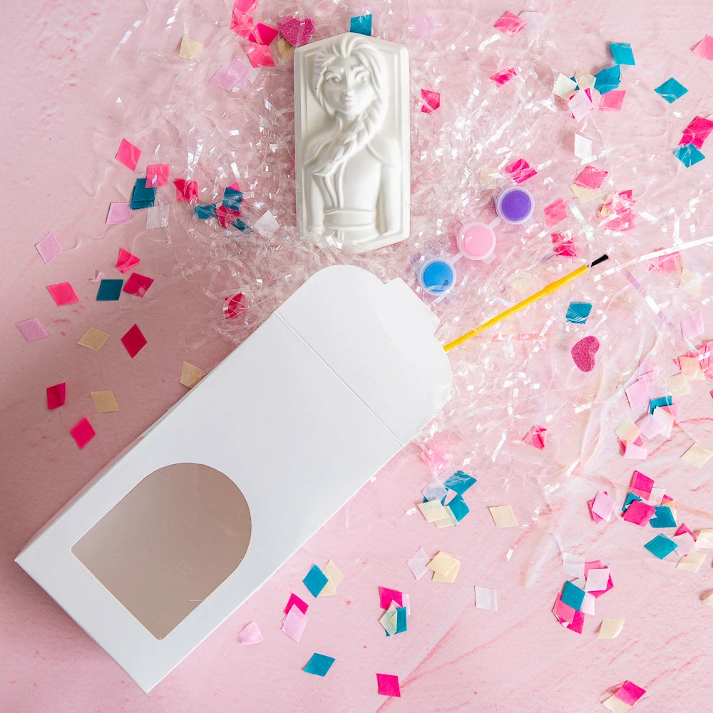 A great addition to any Frozen party! Paint your own plaster Princess Elsa from Frozen! Perfect for use by children aged 3 and up. The mini set comes with three colourful paints and one paint brush so you can paint on your own at home or as an activity at a birthday party. Comes packaged in a beautiful white window box.