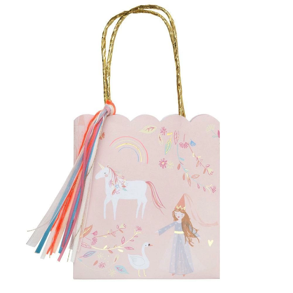 It’s a joy to receive a party bag, especially when they are as magical as this! Beautifully illustrated and crafted with a scalloped edge, shimmery gold handle and lots of pretty ribbons.