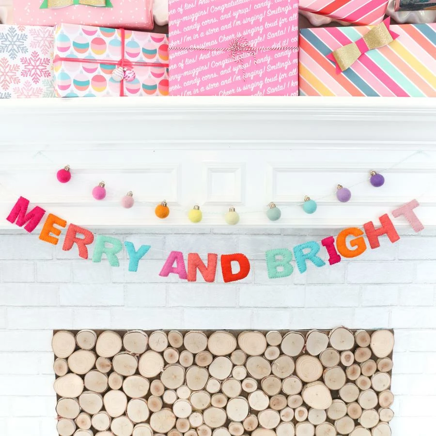 Merry & Bright puffy felt garland. Bring some colourful festive cheer to your home decor this Christmas with this handmade felt garland.
