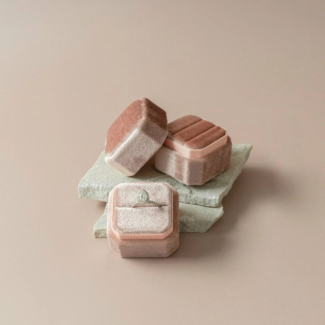 Our luxe edition octagonal velvet ring boxes have been hand crafted using only the finest velvet and suede materials.Â
