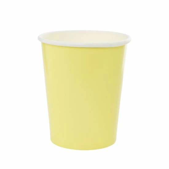 These paper cups are perfect for warm or cold drinks.Ā Pastel yellow in colour, coordinates with most party themes.Ā Add a paper straw to finish off your party beverage look.