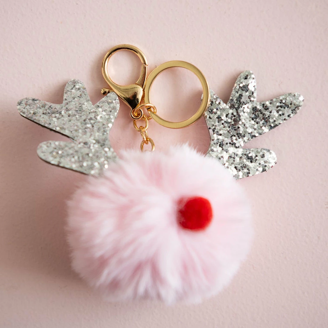 3.Ā Christmas Elk Pom Pom Glitter Key Ring