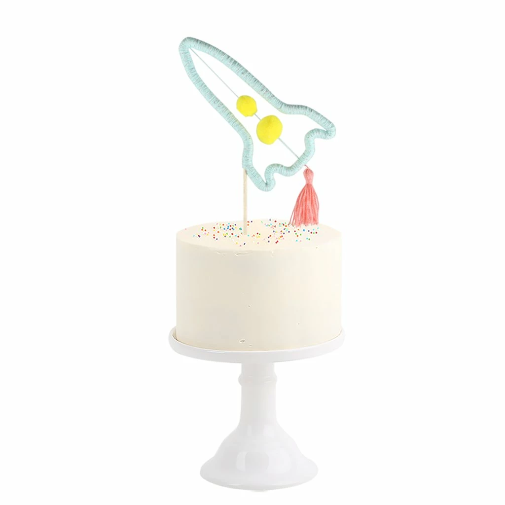 This cotton handmade rocket cake topper is truly out of this world!! Perfect for a space party, it will add the wow factor to any cake.