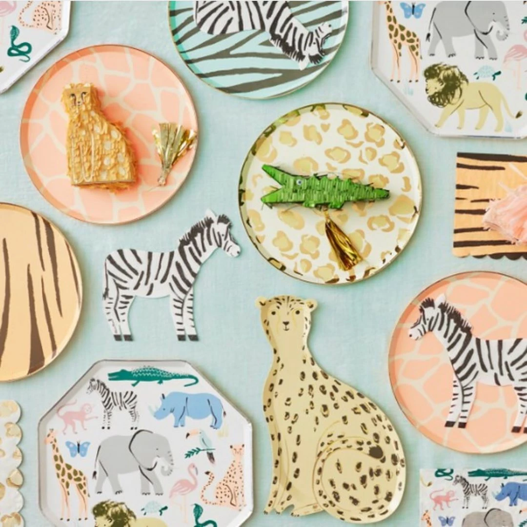 These Safari Animal Print large napkins will look perfect at a safari-themed party. Ideal to add colour and style to the table. Featuring four designs, all with a neon print and gold foil details and a stylish scallop edge.