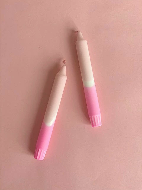 Our strawberry gelato dip dyed candle comes in beautiful shades of pinks. Each candle is handmade and unique.