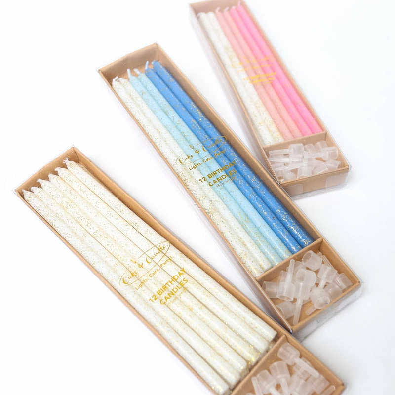 Celebrate in style with these 15cm tall glitter dipped cake candles ready to brighten up any birthday cake.Ā Each candle has it’s own plastic holder.Ā Wipe clean and use for many more celebrations to come.