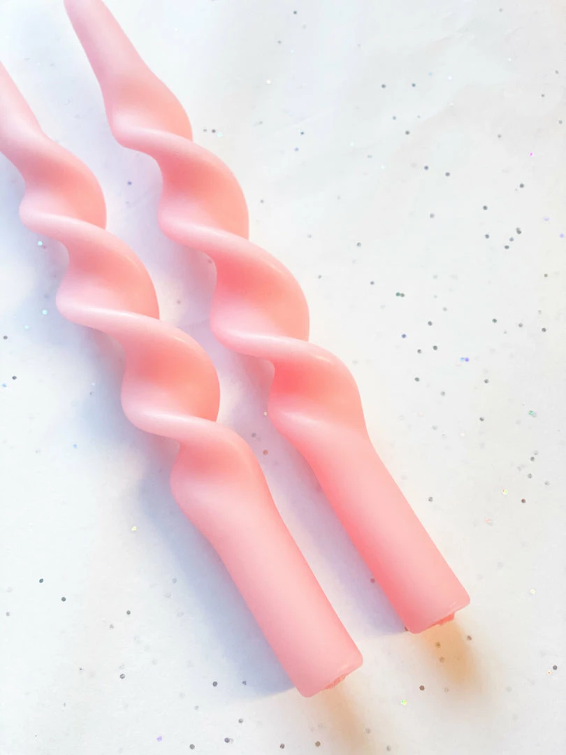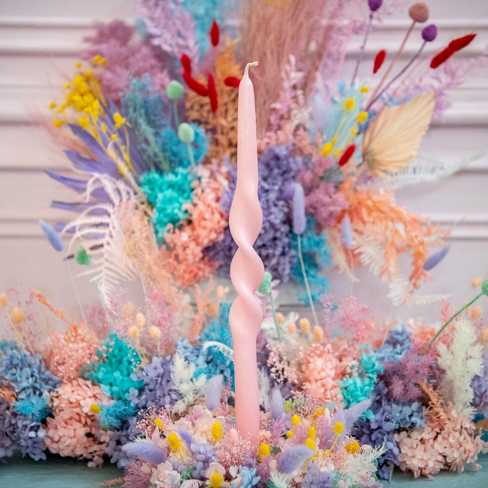 Our pink salt twist candle comes inĀ beautiful shade of pastel pink. Each candle is handmade and unique. Add a bit of fun and colour to your home decor or soiree with these beautiful candles.