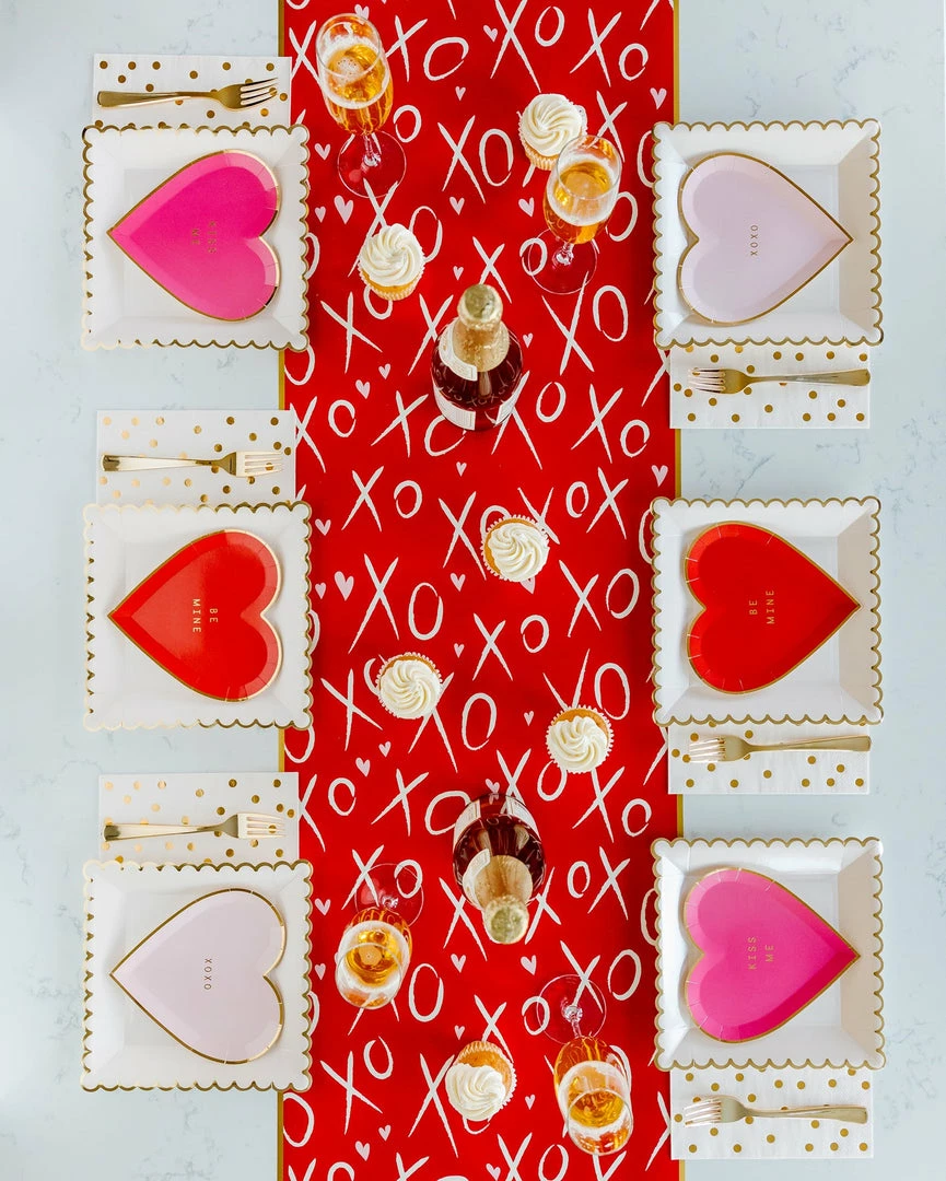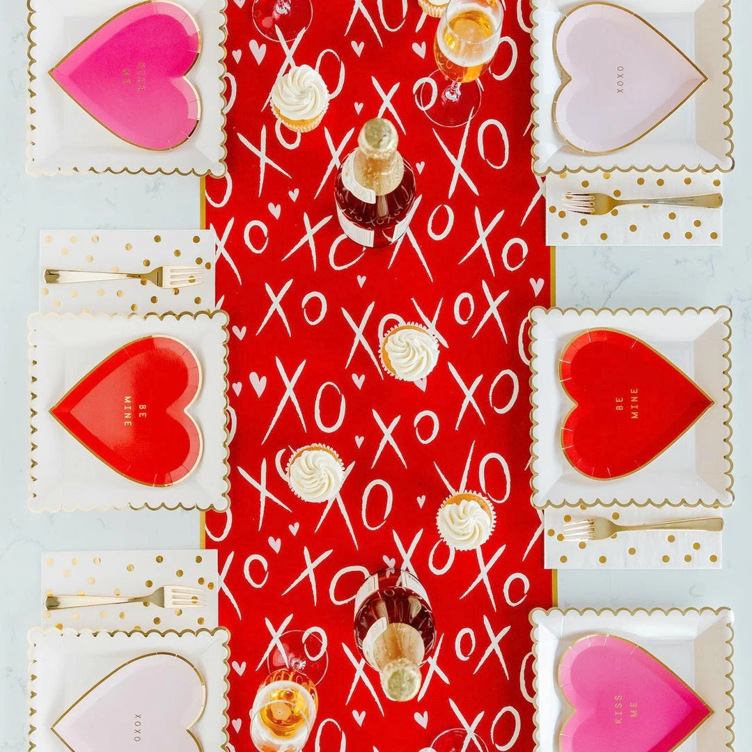 In classic Valentine red and cream this XOXO table runner will let everyone who sits at your table know just how much you love them! It’s great for Valentine dessert tables, anniversary dinners, and parties! It makes setting and cleaning up a festive table easy, especially when you layer it with some of our cute Valentine plates and napkins!