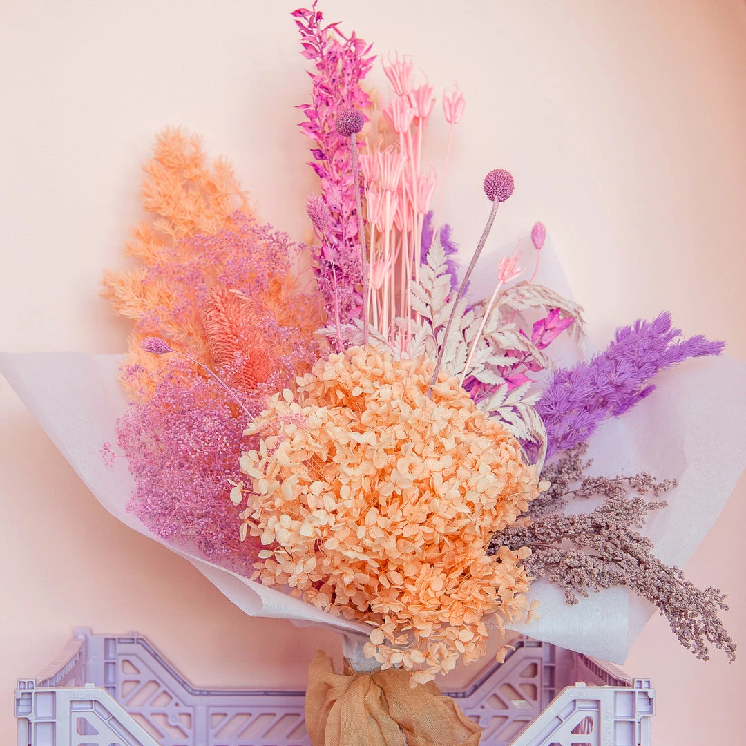 *Please note that dried delicate flowers may naturally shed during delivery, however this should not affect the overall look of the arrangement. Whilst we try to make all arrangements look exactly as pictured, all arrangements feature real dried or preserved flowers and are hand made, therefore may vary slightly.