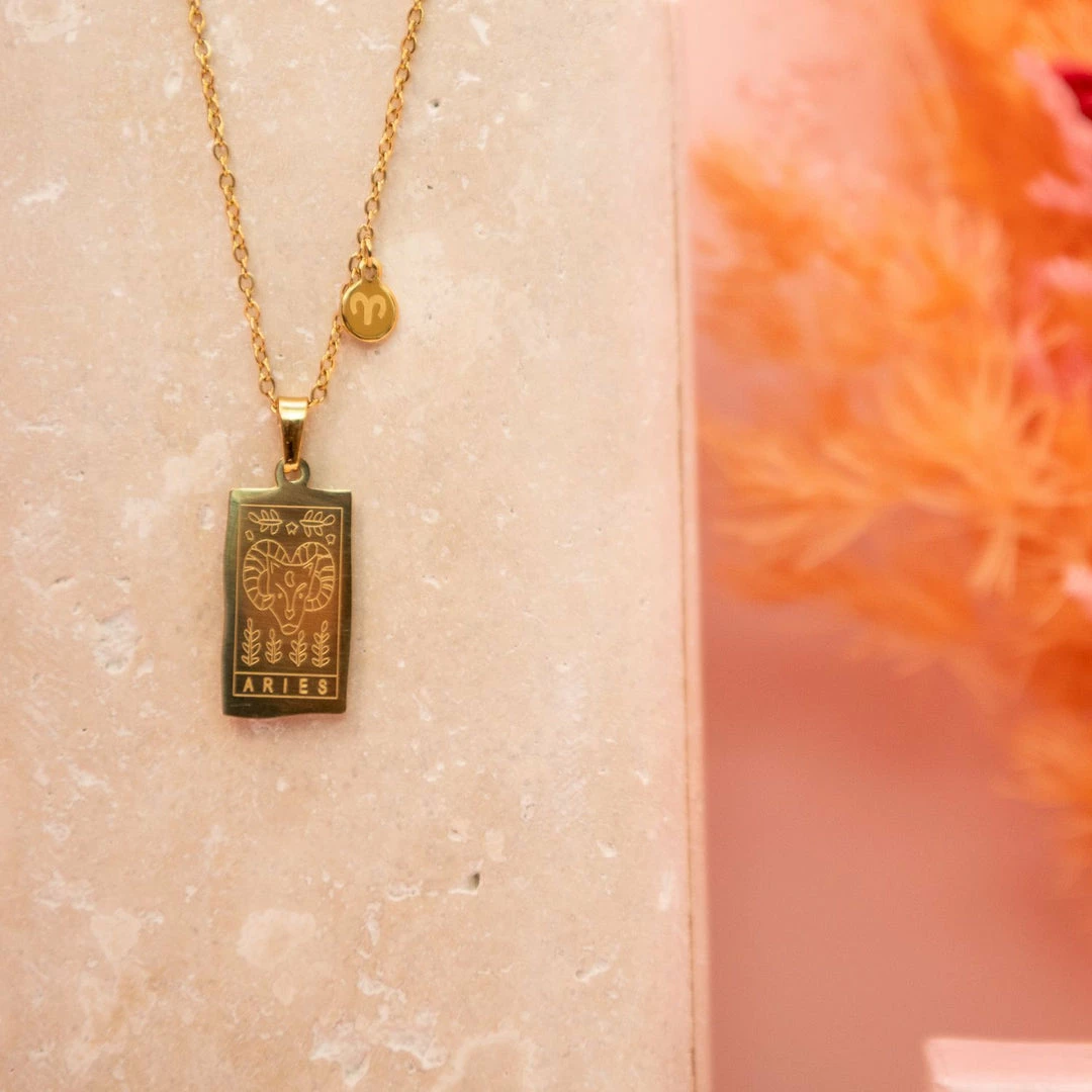 - Tarnish free 18K gold plated stainless steel pendant necklace, 19cm long chain, clasp closure, laser etched front and back